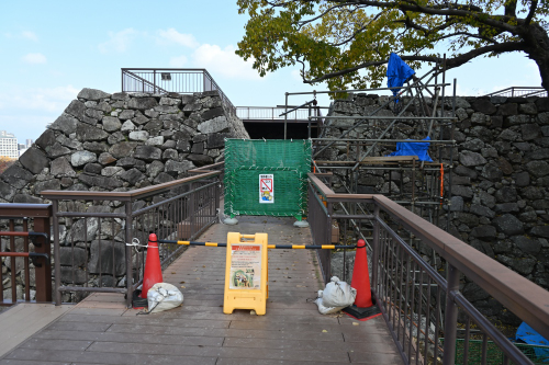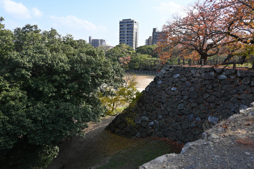 福岡市地下鉄で赤坂駅まで行き、舞鶴公園内をぐるりと回って大濠公園駅まで歩いた。城跡には現存櫓や移築された櫓や城門、復元された櫓や城門が点在していて、かなり見応えがあった。しかし、広い範囲に点在していたので、結構歩き疲れた。移動の途中荷物を預けるタイミングが無かったので、大きな荷物を持ったままの移動だった。天守台は発掘調査のため、12月中旬まで立入り禁止となっていたのは残念だった。