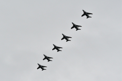 と、八機の T-4 により行われた。昨年と組み合わせは違うが、同じ九機による航過飛行だった。