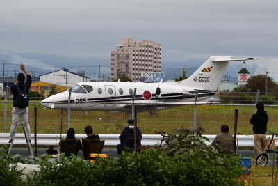 次のプログラムは救難展示で、U-125A と UH-60J がフォーメーションで離陸していった。使用ランウェイは R/W09 なので、この場所からは離陸を見るのに都合が良い。しかし、この場所からは基地内のエプロン地区を見通すことができないので、救難展示自体を見ることはできない。基地上空を旋回している