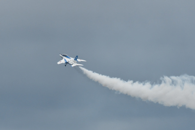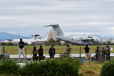 オープニング・フライトの前に離陸したと思われる E-767 が会場に戻ってきた。展示飛行の開始時刻は本番で予定されている時刻(9:50)と同じだ。フライト自体は例年と同じようなものだが、目の前で見たローパスは迫力があった。大きな機体がタッチアンドゴーをするのでは無いかと思われるほど滑走路に近づき、全力で高度を上げていった。R/W27 からの進入なので、ちょうど目の前が滑走路に一番近づくポイントとなった。