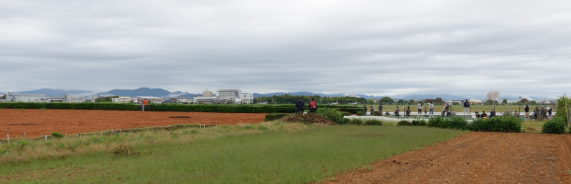 オートレース場構内の食堂で昼食を済ませ、先ほどの観戦場所に戻る。明日の航空祭のブルーインパルスのフライトは 12:35頃から始まるので、ウォークダウンは