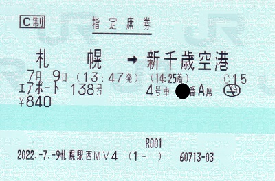 | JR北海道/函館本線/千歳線 快速「エアポート」138号 札幌 13:47 → 新千歳空港 14:25 | ||||||||||||||