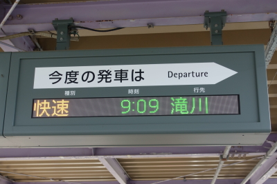 | 野花南駅停車 / 9:28~31 (定刻9:28) | 芦別駅停車 / 9:43 (定刻9:40~42) | |||||||||||||