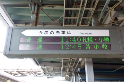 | JR北海道/函館本線 普通 186M 岩見沢 11:40 → 札幌 12:22 | ||||||||||||||