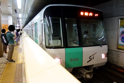 札幌市営地下鉄/南北線 麻布発、真駒内行き 札幌市営地下鉄5000形電車 第06編成(6両) 歩いても行ける距離だが、一区間だけ地下鉄を利用した。土曜日なので、日中だが乗客が多い。 |