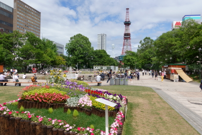 おなかを満たしたあとは、札幌駅までは歩いて戻ることにした。大通公園(駅)から札幌駅までは地下歩道で結ばれているが、今日は天気が良いので地上を歩いて帰る。土曜日なので大通公園は家族連れや観光客が多く、いつ来ても雰囲気が良い。新しいビルや無くなったビルも多く、私が住んでいた頃とは景色がだいぶ違う。 |
