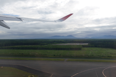 初めて乗ったA350-900だったが、先日乗ったB787-8と比べて快適さで劣った。座席の位置が違うのでその影響かもしれないが、エンジン音が昔の機体のように五月蠅く感じた。座席やシートピッチは同じだと思うが、ほぼ満席だったのであまり良い印象が残らなかった。 |
