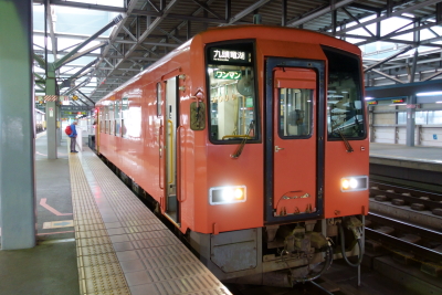 武生と鯖江でまとまった乗降があったが、車内の乗客の数はあまり変わっていない。鯖江では後続の特急に抜かれるため、6分間の停車時間があった。その特急は「サンダーバード1号」で、それに乗車しようとも考えたが、大阪発の初発の金沢行きなので混雑するかもしれないと思ってやめた。 越美北線の起点は福井の1つ手前の越前花堂だが、列車は全て福井発着となっている。敦賀方面から乗車して九頭竜湖方面の乗車券で福井で乗り換えると、越前花堂-福井間の往復運賃を別に支払わなければならない。しかし、越前花堂を通過する特急に乗車した場合、運賃計算の特例で越前花堂-福井間の往復運賃は不要になる。このような特例区間は全国各地に設定されている。今回は「北陸フリーきっぷ」利用なので、福井まで乗車して越美北線に乗り換える。 越美北線は福井県福井市の越前花堂駅から大野市の九頭竜湖駅を結ぶ52.5㎞の地方交通線だ。元は福井駅(当時は北陸本線に越前花堂駅が無かった)と岐阜県の美濃太田駅を結ぶ越美線の一部として建設された。岐阜県側は第三セクターに移管され長良川鉄道越美南線となっている。しかし、両県を結ぶ計画は果たせず、越美北線も存亡の岐路に立たされている。JR西日本が公表した「輸送密度2,000人以下」路線30線区に含まれていて、輸送密度の低さは昨日乗車した小浜線よりずっと下だ。 越美北線乗り場の2番線は3番線の越前花堂方の切り欠き部分にある。ホームに到着したときには列車はまだ到着していなくて、ベンチには2人の乗客が待っていた。九頭竜湖行き723Dは8:58頃回送で入線してきた。車両はキハ120形1両で、進行方向左側のボックス席を確保した。キハ120形では最初の区分の200番台で、普通鋼製の車体が朱色に塗られている。ステンレス車体の0,300番台と違い、窓が開閉できて車幅が少し狭い。 |