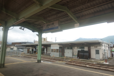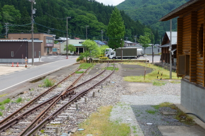 一乗谷からは山間の狭い谷間を列車は進むが、大野盆地であたりは開ける。越前大野は沿線で1番大きな駅で、福井からの列車の半数はここで折り返す。 大野盆地を離れ再び山の中に入っていくと、間もなく1960年に開通した時点での終着駅の勝原だ。付近には何もなさそうだが、観光客らしき2人が列車を降りた。その先長大なトンネルを2つ抜けると終着駅の九頭竜湖だ。終点まで乗り通したのは全部で6人だった。 |