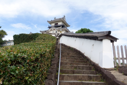 現在見られる城郭の構造の基本的な部分は安土桃山時代に入封した山内一豊によるものだ。「東海の名城」とうたわれた天守は、幾度かの地震により倒壊、再建を繰り返された。現在の天守は、1994年に日本初の本格木造天守閣として復元された(白河小峰城の実質的な天守である三重櫓の方が先で、1991年に木造で復元された)。