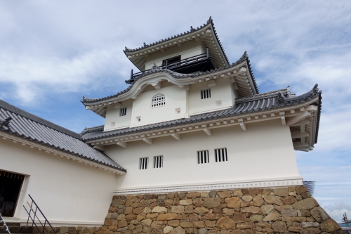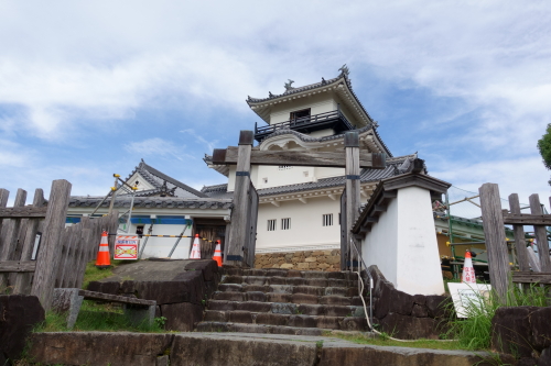 実家に用事があり焼津を訪れた際、足を伸ばして掛川城を見学してきた。昨年6月から今年3月まで天守の大規模修復工事が行われていたため、その完成を待って訪問した。一部の塀や太鼓櫓は修復をしているようで、作業用の足場のようなものやネットが掛けられていた。