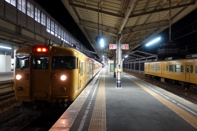 山陽本線 普通 318M 岩国発、糸崎行き JR西日本227系電車0番台 A-20(3両)+A09編成(3両)(下関総合車両所広島支所) 糸崎行き 318M は 227系六長編成で、先頭車両に乗車した。岩国始発の電車で入線時に車内は混雑していたが、多くの乗客が下車して無事座ることが出来た。先頭車両は、座席の5~6割程度が埋まった。 |