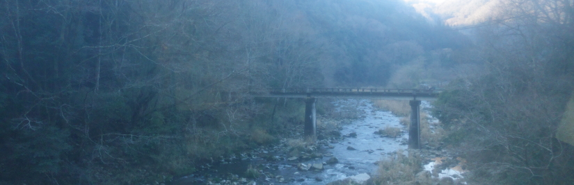 次の下川辺から山深くなる。山の中の小さな駅が続くが、高校生がぱらぱら乗車してくる。この先備後三川までは芦田川沿いに線路は走っている。1989年(平成元年)4月20日に八田原ダム建設により、河佐-備後三川間が経路変更され、営業キロが 1.4km 短縮され、途中の八田原駅が廃止になった。 |