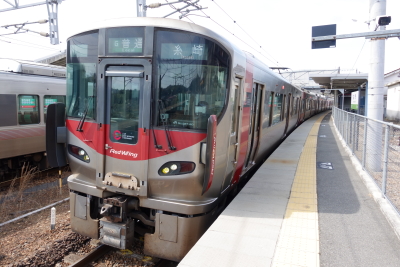 227系0番台は、広島地区の老朽化した 113系・115系などの置き換えを目的として、2015年(平成27年)から広島都市圏の山陽本線などに投入され、「Red Wing」という車両愛称が付けられている。広島地区の在来線に新型電車が投入されるのは 32年ぶりとなった。その後順次増備され、2019年(平成31年)3月16日のダイヤ改正時点で広島地区への投入が完了し、広島地区の旅客列車が 227系に統一された。 座席は 223系・225系と同じシートピッチ 910mm の転換クロスシートで、車端部にロングシート、出入口付近には収納式の補助席が設置されている。転換クロスシートなので非常に快適で、ロングシート主体の JR東海・静岡地区と比べるとうらやましくなる。ラッシュ時に対応できるなら、転換クロスシートを導入して欲しい。 |