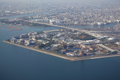 上空は薄い雲の中のフライトとなり、展望はあまり良くなかった。しかし、伊丹空港はなんとか見ることができた。その先、高度を下げていくと視界が開け、御前崎上空付近からは窓からの眺めを楽しめた。印象的だったのは伊豆大島で、上空からこれだけはっきり見ることができたのは初めてだと思う。 房総半島を南から縦断して、千葉市上空で進路を西に変えながら高度を下げていく。右手に東京ディズニーリゾートが見えると羽田空港は目の前だ。南風のようで、着陸は B滑走路で、R/W22 だ。 |