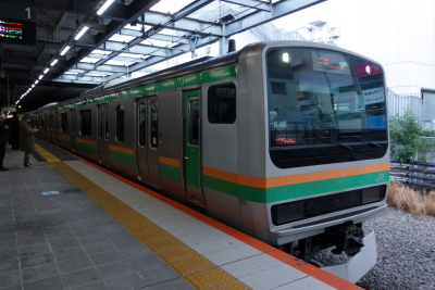 上野東京ライン 普通 1589E 宇都宮発、伊東行き JR東日本E231系電車1000番台 K-08編成(10両/国府津車両センター) 熱海行き 1589E は E231系十両編成で、普通車の乗車位置には多くの人が並んでいた。電車の混雑が予想されたので、JREポイントの特典グリーン券を利用する。しかし、グリーン車も大混雑で、7~8割程度の座席が埋まっていた。空いていた二階席の通路側に着席した。多分普通車の方では着席できなかっただろう。 |
