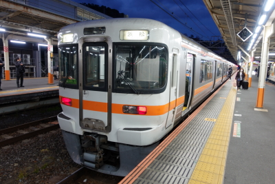 | 東海道本線 普通 483M 熱海発、浜松行き JR東海313系電車300番台 / K-01編成(2両) + 313系4両(静岡車両区) 乗車した編成は 313系300番台だったので車内は転換クロスシートで、ロングシートを予想していたので少し得をした気分だ。乗車した車両は、発車までに半分くらいの座席が埋まった。 |