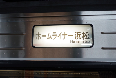| ホームライナー浜松3号 4383M 沼津発、浜松行き JR東海373系電車 F-3編成(3両) + F-1編成(3両)(静岡車両区) 乗り換え時間が3分しかないので、ホーム静岡寄りの券売機で乗車整理券を購入できるか心配だったが、先客は一人だけだったので余裕を持って事前購入が出来た。車両は特急用 373系六両編成で、先頭車両に乗車した。本来は座席指定のようだが、コロナ禍以降は座席は指定せず自由席として運用されている(車外、車内表示とも自由席となっている)。 |
