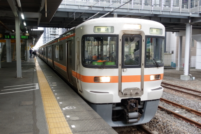東海道本線 普通 729M 静岡発、浜松行き JR東海313系電車300番台 / K-7編成(2両) + 315系電車3000番台 / U-12編成(4両)(静岡車両区) 浜松行き 729M は 313系二両+315系四両編成で、313系の先頭車両に乗車した。300番台なので転換クロスシートで、車内の座席は半分くらい埋まっていた。静岡車両区の 313系は元々転換クロスシートはなかったが、他線区からの転入で乗車機会が増えた。 |
