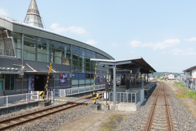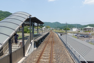井原線の開業は 1999年と新しく、清音-神辺間はほとんどが高架となっている。その区間は単線で非電化だが、線形も良いのでローカル線としてはスピーディーだ。 矢掛は矢掛町の中心にあり、矢掛町役場や矢掛高校がある。1面2線の行違い駅になっていて、この駅では多くの乗客が下車した。 |