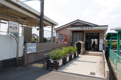JR福塩線の線路が右手から近づいて並行して走るようになると、間もなく終点の神辺となる。神辺は総社同様井原鉄道専用のホームから発着するが、こちらは福山直通列車が数本設定されていて、直通列車はJRのホームから発着する。 井原鉄道の駅舎と JRの駅舎は別々になっているが、両者のホームを直結する乗換改札がある。井原鉄道はワンマン運転で車内で料金の収受が行われるため、井原線の乗降には改札は無い。しかし、井原鉄道には駅員が配置されていて、乗り換え改札では乗車券などの確認が行われている。 |