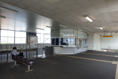 早雲の里荏原の手前(清音方向)に本社・車両基地(井原コントロールセンター)があり、IRT355形が数台停車していた。駅からは 500メートルくらい離れているが、構内扱いとなっている。 井原は、その名が現すように井原線最大の拠点駅となっていて、井原市の中心駅だ。天井が高くガラス張りの開放的な立派な駅舎がある。早雲の里荏原と井原は地平駅となっている。 |