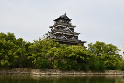 紙屋町東停留所から歩いて 10分ほどで広島城跡に到着した。天守等建造物の入場は9時からだが、城跡にはその前から入場できる。まずは二の丸を通るが、二の丸には「表御門」「太鼓櫓」「多聞櫓」「平櫓」が復元されている(内部公開は無料だが、9時から)。一度天守の前まで行ったが、9時までまだ時間があるので堀の北側の遊歩道を歩き、北側から天守を眺める。 入場時間に合わせて天守に戻り、内部が博物館になっている天守を見学する。外国人を含む観光客が入場を待っていたが、まだそんなに混雑はしていない。この天守は 2026年3月22日にを閉館されてしまうが、天守内の刀剣や鎧などの展示品は三の丸に新たに整備する歴史館に移される。 現在の天守は、国宝(旧国宝)に指定されていた木造の大天守が 1945年(昭和20年)に原子爆弾の爆風により倒壊した後、1958年(昭和33年)に外観復元された。火災対策のため、木造からSRC造に変更している。最上階のみを木造での復元としたり、懸魚の形状を古写真に基づくものではなく創建当初のものを想定するなど初代天守の忠実復元を試みていた一方で、窓の意匠について本来、突上窓であるものを、連子窓(格子窓)として復元したり、南廊下の1階・2階に窓を新たに開けるなど、戦災以前の外観とは異なる部分が指摘されている。 |