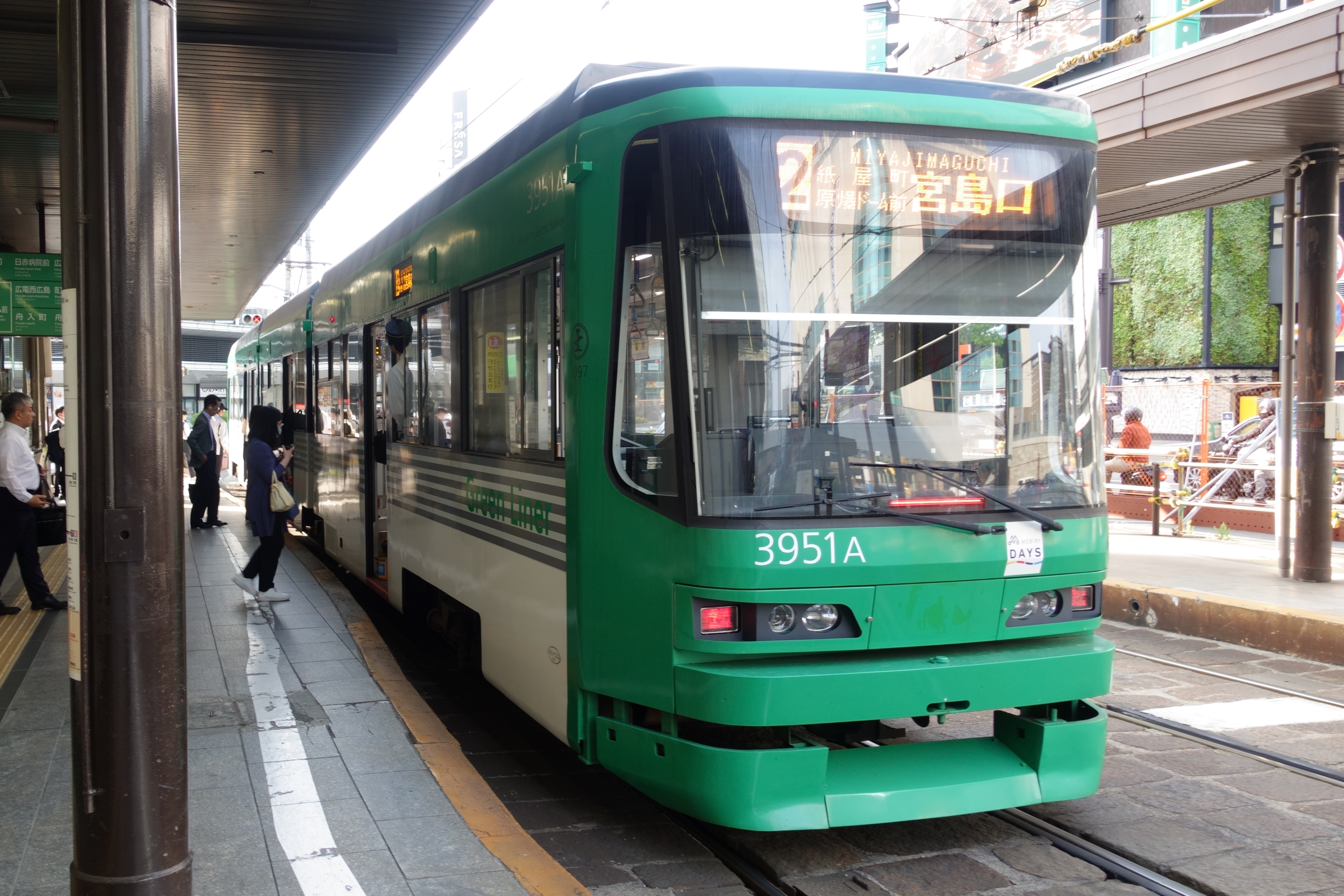 | 広島電鉄/2号線 広電宮島口 13:58 → 原爆ドーム前 14:49 | ||||||||||||||
