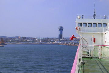 一眠りすると、だんだん揺れが小さくなってきたようだ。さすがにおなかが空いてきたので、昼食に向かう。フェリーの場合食事の時間が限られているので、この時間帯を逃すと食べられなくなってしまう。しかし、レストランの昼食メニューは800円の丼ものなど三種類しかなく、仕方なくカレーライスを食べる。通常だと13時過ぎには入港なので、簡単な食事だけというのだろう。そのせいかレストランはがらがらで、外でカップヌードルなどを食べている人が目につく。大洗港に近づくと揺れはほとんど無くなり、デッキに出てのんびりする。だんだん大洗港の建物が近づいてくると、ようやく東京(ここは茨城だが)に帰ってきたんだなあと感じる。台風一過の空は晴天で気持ちが良く、こうした気分を味わえるのがフェリーの旅のいいところだ。