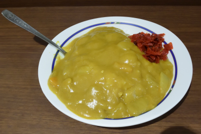 旅行最終日は東京に帰るだけの予定だ。午前中は天気がいいのだが、一眼レフを持ってきていないので、115系の撮影も出来ない。東京まで帰るので 10月1日にサヨナラ運転となる E4系「Maxとき」に乗車することも考えたが、E4系にはもうお別れを済ませているので別のルートを選んだ。北陸新幹線に乗車したことがないので(かなり以前、長野新幹線と呼ばれていた時、大宮-佐久平の E2系「あさま」には乗車したことがある)、大人の休日パスのエリアぎりぎりの上越妙高から東京まで乗車することにした。新潟から上越妙高までは「しらゆき」に乗車する。 ホテルをチェックアウトして、とりあえず万代シティ・バスセンターに向かう。目的はもちろん「バスセンターのカレー」だ。朝8時から営業しているので、朝食として食べることが出来る。ホテルの朝食も魅力的だが、どちらか選ぶならバスセンターのカレーだ。いつもは歩いて行くのだが、今回はバスを利用する。萬代橋ラインと呼ばれる路線で、「にいがた新バスシステム」の取り組みに合わせて導入された路線だ。専用車線は実現できなかったが、BRT と呼ばれていて、休日の日中は10分毎に運行されている。万代シティは二つ目のバス停で、料金は100円だ。 バスセンターには8時半過ぎに到着したが、驚いたことに混雑していた。しばらく様子を見て、人がある程度減ってからカウンターに向かった。朝からボリュームのある普通盛りを食べ、大満足で BRT に乗って新潟駅に戻った。 |