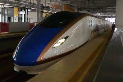 「はくたか562号」は E7系12両編成だ。大宮までの途中停車駅は長野と高崎だけの速達タイプの「はくたか」だ。先月は夏休み期間中でそれなりの乗客がいたが、今日は駅構内、ホームともに閑散としている。車内もがらがらで、行きの東北新幹線より乗客は少ない。 |