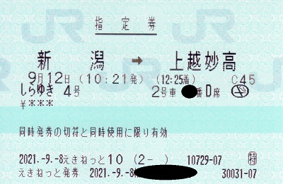 | JR東日本 / 特急「しらゆき」4号 54M 新潟 10:21 → 上越妙高 12:25 | ||||||||||||||
