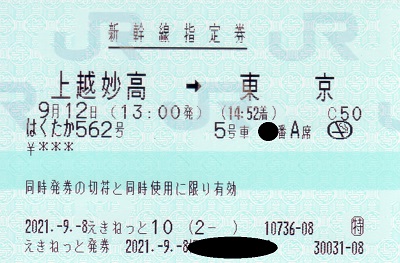 | JR東日本 / 北陸新幹線 「はくたか」562号 562E 上越妙高 13:00 → 東京 14:52 | ||||||||||||||