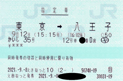 | JR東日本 / 特急 「かいじ」35号 5135M 東京 15:15 → 八王子 16:02 | ||||||||||||||
