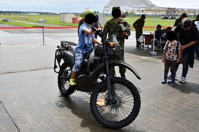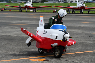 T-7 をディフォルメしたような小型バイクの愛称で、「リトルウィング」というチーム名がある。これまでの航空祭では昼休みに行われることが多かったが、今回は途中に休みがないので、プログラムの最後に置かれている。結構人気があるので、例年は早めに場所取りをしないと見ることができないが、今年は観客が少ないので余裕を持ってみることが出来た。