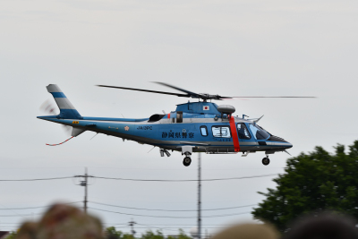 今年のフライトはアグスタ A109E の「ふじ3号」で、この機体のフライトを見るのは久しぶりだ。フライト内容は例年通りの軽快な機動飛行で、観客を楽しませてくれた。静浜基地航空祭ではなくてはならないプログラムだ。