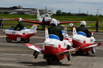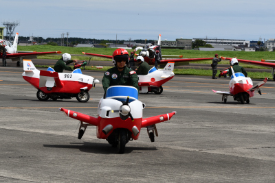 T-7 の整備士達が T−7Jr.を駆って縦横無尽に走りまわり、機体(車体)が交差したり、クルクルと回ったりして空でのアクロバット飛行に負けないくらいのアクロバット走行を見ることができた。久しぶりに、T-7Jr.の走行を楽しめた。