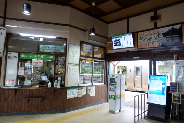 「大人の休日倶楽部パス」を使った花輪線、只見線乗車の旅行で、小出に宿泊した翌日の旅行三日目に、上菅谷から普通列車に乗車して到着、折り返し列車で上菅谷に戻った。 単式ホーム1面1線を有する地上駅。水郡線常陸太田支線の終点。指定席券売機・自動券売機・簡易Suica改札機設置の業務委託駅(JR東日本ステーションサービス委託)で一部時間帯は駅員が不在となる。駅の管理は水戸営業統括センターが行っている。 2023.07.01 |