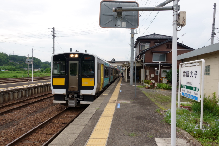 「大人の休日倶楽部パス」を使った花輪線、只見線乗車の旅行で、小出に宿泊した翌日の旅行三日目に、郡山から水郡線直通の普通列車に乗車して下車、常陸太田支線に乗り換えて常陸太田に向かった。 島式ホーム1面2線と単式ホーム1面1線、計2面3線のホームを持つ地上駅。ホームと駅舎間は構内踏切で結ばれている。駅出入口は東側(駅舎)1か所のみで、市役所のある西側へは直接出入りできない。水郡線統括センターの直営駅で、指定席券売機・簡易Suica改札機が設置されている。那珂市の代表駅で、本線と常陸太田支線(常陸太田駅方面)が当駅で分岐する。 2023.07.01 |