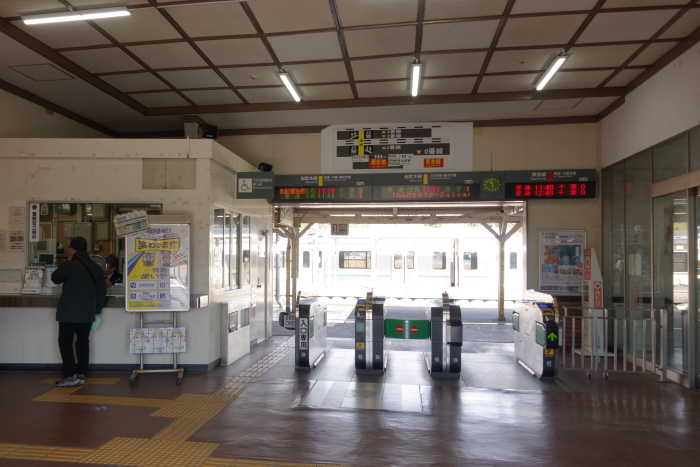 横須賀線と久留里線の乗りつぶしに出かけたときに利用した。逗子から横須賀線(総武本線・内房線直通)に乗車して下車、久留里線に乗り換えて上総亀山に向かった。 島式ホーム2面4線を有する地上駅で、橋上駅舎を持ち東西に出口がある。西口には橋上駅舎とは別に3階建ての駅舎があるが、この駅舎は駅長事務室などが3階に入居しているほかは駅舎の機能がほとんどなく、店舗が2軒と橋上駅舎への階段があるだけ。 木更津統括センター所在駅(直営駅)で、みどりの窓口・自動券売機・指定席券売機・自動改札機・自動精算機が設置されている。 2023.04.06 |