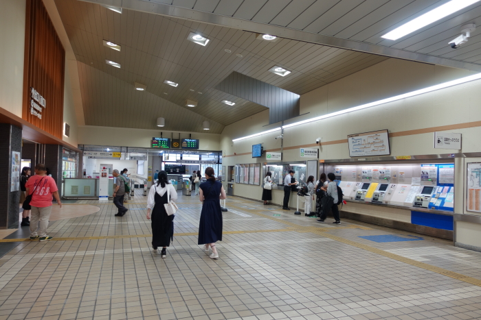 「JR東海&16私鉄 乗り鉄☆たびきっぷ」を使って東海地区の第三セクター私鉄に乗車する旅に出かけたとき、多治見から太多線の普通列車に乗車して到着。美濃太田駅近くのホテルに宿泊した。翌日、長良川鉄道越美南線に乗車して関へ向かった。 鉄骨造2階(一部3階)建ての「美濃太田駅自由通路」に接して南側にJR線乗り場の改札口が1か所、北側に長良川鉄道線乗り場の出入り口が1か所設けられている。JR線と長良川鉄道線は改札内ではつながっていない。 JR東海の駅は島式ホーム2面4線を持つ地上駅。橋上駅舎を備える。改札口は1か所のみで、自由通路に面する。駅長・駅員配置駅(直営駅)。自動券売機、JR全線きっぷうりば、自動改札機(TOICA利用可能)がある。 長良川鉄道の駅はJR線のりばの北側に1面1線の単式ホームがある。2006年以降、JR線と線路はつながっていない。このホームへの出入口は「美濃太田駅自由通路」内に1か所あり、階段およびエレベーターによって1階のホームと結ばれている。有人駅で、9:00〜17:30の間はホーム上の窓口が営業されている。また、窓口に隣接して自動券売機を1台備えている。駅で改札や集札は行っておらず、車内精算となる。 2024.07.14-15 |