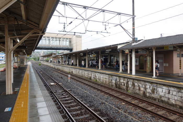 18きっぷを使って関西地区のJR線乗車の旅行をしたとき、加茂から関西本線に乗車して到着、関西本線の快速電車に乗り換えて名古屋に向かった。当駅を利用するのは初めてだ。 単式ホーム1面1線と島式ホーム2面4線、合計3面5線のホームを持つ地上駅。駅舎は構内北側、単式ホーム(1番線)に隣接しておかれている。現在の駅舎は1913年11月3日竣工の二代目で、天窓を付けるなど改修・増築しながら使用している。 駅舎とホームはJR東海の管理だが、構内にJR西日本の亀山鉄道部があるため、建物や車両留置線の一部はJR西日本が所有している。 2023.03.18 |