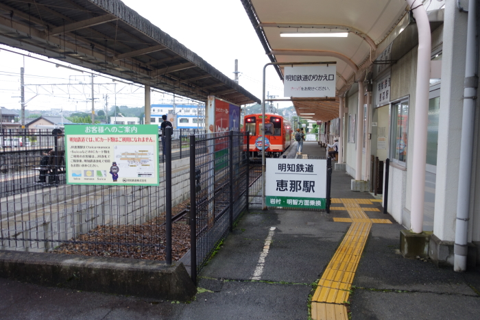 「JR東海&16私鉄 乗り鉄☆たびきっぷ」を使って東海地区の第三セクター私鉄に乗車する旅に出かけたとき、名古屋から中央本線の区間快速に乗車して到着。明知鉄道明知線に乗車して明智に向かった。 JR東海の中央本線と、第三セクター鉄道である明知鉄道の明知線との接続駅。明知線は当駅が起点。明知線は元々は中央本線ともども国鉄の路線で、当駅も国鉄の単独駅だったが、明知線が第1次特定地方交通線への指定を経て1985年に明知鉄道に転換されたため、現在の形となった。 単式ホーム1面1線と島式ホーム1面2線を有する地上駅。2つのホームは、ホーム東側にあるエレベーターが設置された跨線橋と、西側の階段がある跨線橋で連絡している。JR東海交通事業の職員が業務を担当する業務委託駅で、中津川駅が当駅を管理している。早朝・深夜は無人となる。 2024.07.14 |