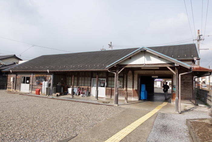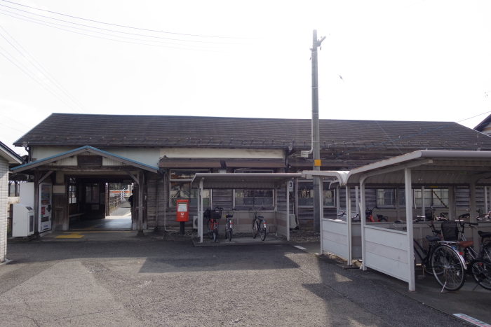 紀勢本線のキハ40を撮影の際、この駅で下車して撮影場所に向かった。松阪に宿泊して紀勢本線でこの駅まで来て、撮影後次の撮影のため多気駅に移動した。 単式ホーム1面1線と島式ホーム1面2線、合計2面3線のホームを有し、単式ホームに接して駅舎のある地上駅。駅舎は古くからの木造のもので、天井が高い。かつては貨物扱いをしていて、現在もその遺構が一部残る。津駅管理の無人駅で、2011年9月30日までは、駅舎の中で東海交通事業の職員がマルス端末で発行した乗車券類を販売していた。 2015.10.24 |