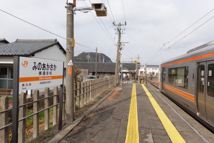 「青春18きっぷ」(3日間用)を使って、二泊三日の天橋立と彦根城を見学する旅に出かけたとき、大垣から美濃赤坂支線の普通電車に乗車して到着、折り返し大垣に戻った。未乗車だった美濃赤坂支線の乗車が目的だった。 JR東海・JR貨物の東海道本線支線(通称:美濃赤坂支線)、西濃鉄道の市橋線(貨物線)が乗り入れる。付近の金生山から石灰石が産出されるため、その輸送のための貨物列車が1日3便発着する。ただし、旅客列車では終着駅。 単式ホーム1面1線を有する地上駅。ホームに隣接する線路が美濃赤坂駅の本線となっている。ホームは駅構内の西端にあり、その北端に駅舎が置かれている。駅舎は開業当時からの木造で、窓口は閉鎖されている。旅客駅としては大垣駅が管理する無人駅。 副本線は7番線と機回し線隣の2番線の2線。7番線は貨物列車の着発線で、ここに市橋線が接続している。構内南側には西濃鉄道の機関区が設置されている。分岐器操作などの駅業務はJR東海より委託された西濃鉄道が行っている。 2024.12.31 |