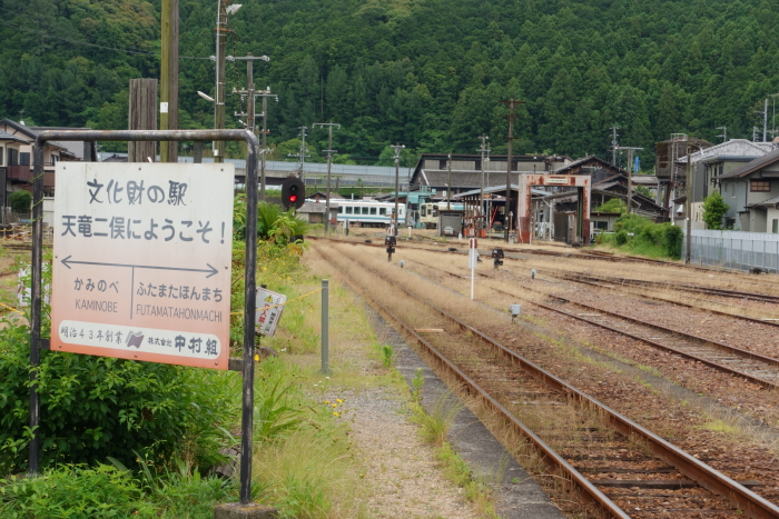 天竜浜名湖鉄道天竜浜名湖線の天竜二俣駅で土休日限定で開催されている、「洗って!回って!列車でGO!」という体験企画に参加した。鉄道会社の企画なので鉄道で行くのが筋だが、妻が一緒だったので車で出かけた。天竜二俣駅前には無料の広い駐車場が用意されている。 2面3線のホームを有する地上駅で、開業当時からの瓦葺き木造の駅舎がある。「本屋」「上り上屋およびプラットホーム」「下り上屋およびプラットホーム」と、敷地内の「揚水機室」「高架貯水槽」が国の登録有形文化財として登録されている。直営駅で天竜浜名湖鉄道の本社が設けられている。 駅東側に天竜浜名湖鉄道の車両基地(機関区)を併設している。全車が両運転台のディーゼルカーとなった現在でも、蒸気機関車時代の扇形庫と転車台がそのまま使用されている。 2024.06.09 |