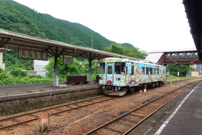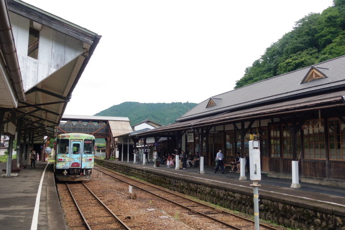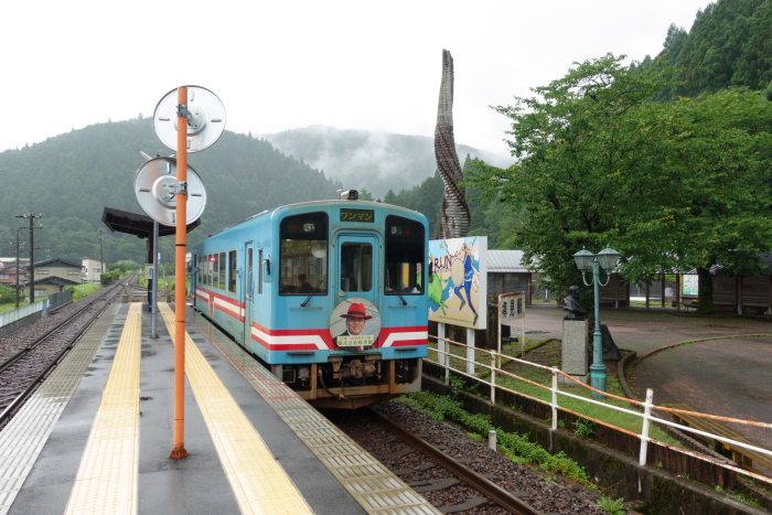 「JR東海&16私鉄 乗り鉄☆たびきっぷ」を使って東海地区の第三セクター私鉄に乗車する旅に出かけたとき、関から越美南線の美濃市行きに乗車して下車。美濃白鳥行き普通列車に乗り継いで郡上八幡に向かった。 1923年(大正12年)10月5日、鉄道省越美南線美濃太田−美濃町間開通時に終着駅の美濃町駅として開設。1954年(昭和29年)11月10日、美濃市駅に改称。1986年(昭和61年)12月11日、越美南線が長良川鉄道へ転換、同社の駅となる。 島式ホーム1面2線を有する地上駅。ホームは駅舎より高い所に設置されていて、駅舎とは関寄りの地下道で連絡している。有人駅で、窓口の営業は火・木曜日を除く9:30 - 18:00の間。なお、自動券売機は設置されていないので、乗車券は全て窓口で購入する。「長良川鉄道美濃市駅本屋」および「長良川鉄道美濃市駅プラットホーム及び待合所」は2013年12月24日、国の登録有形文化財(建造物)に登録された。 2024.07.15 |