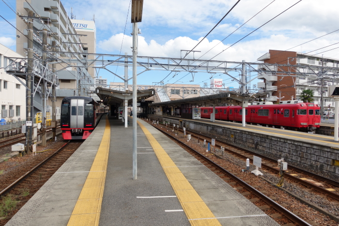 「名鉄 お城めぐりきっぷ 1DAY周遊(織田信長コース)」を使って犬山城と岐阜城見学の旅に出かけたとき、犬山から各務原線の普通電車に乗車して下車。路線バススを利用して岐阜城を見学した後、豊橋行き特急電車の特別車両に乗車して豊橋に向かった。 築堤高架上の名古屋本線と、地平に設置された各務原線の2つの構内からなる。かつての美濃町線系統には各務原線構内に専用の乗り場があった。名古屋本線と各務原線は、路線が完全に分かれていて、尚且つ駅舎もそれぞれ少し離れて存在しているが、同一駅として扱われている。離れている駅舎同士は、改札内の連絡通路で結ばれているため、改札内乗換が可能。なお、名古屋本線と各務原線の線路が当駅では繋がっていない事から、当駅を経由した名古屋本線と各務原線の間での直通運転などは不可能。名古屋本線1-4番線は櫛形2面4線のホームで8両編成対応、各務原線5-6番線は櫛形1面2線のホームで6両編成対応。 2024.09.10 |