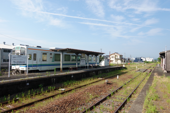 「アストロメガ」に乗車して四日市貨物や三岐貨物など撮影の三泊四日の旅行をしたとき利用した。近鉄富田駅から乗車し、当駅で下車して撮影場所に向かった。撮影後次の撮影地の丹生川駅に移動した。 島式ホーム1面2線を有する地上駅。 構内に車両区・施設区・コントロールセンターが置かれていて、三岐線の運転上の中枢駅となっている。 2019.03.24 |