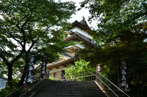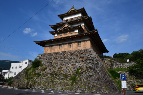 高島城は上諏訪駅から歩いて 15分くらいの距離にあるのでアクセスが良い。本丸は高島公園として整備され、本丸の石垣および北側と東側の堀が残っている。かつての天守は明治初頭に撮影された写真にその姿がうかがえるが、現在の復興天守は窓の大きさや位置などの細部が異なり、屋根には銅板が葺かれていて、内部は資料館となっている。